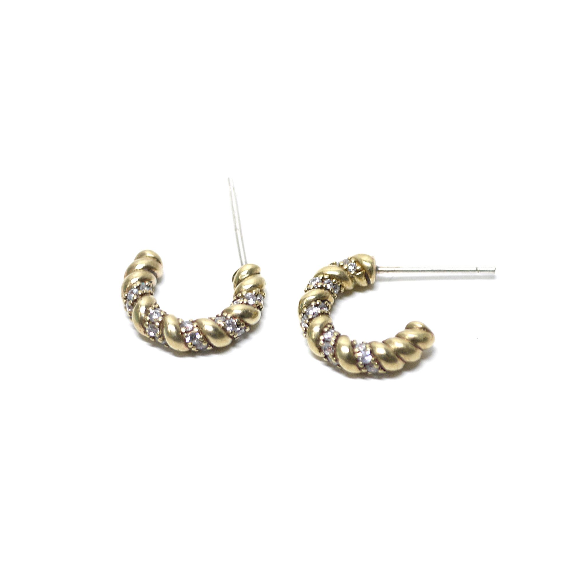 耳にフィットするちょうど良いサイズのフープピアスに豪華に輝くキュービックジルコニアを敷き詰めて洗練されたデザインに仕上げております。シンプルでモダンなフープピアスにキュービックジルコニアがアクセントとなり、上品な印象を与えます。