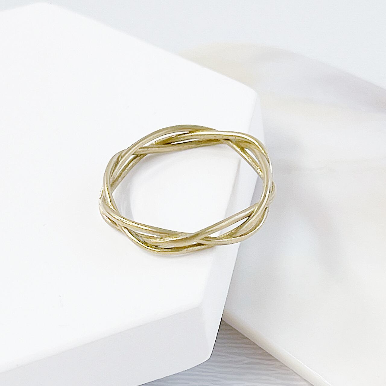 繊細で洗練されたデザインが特徴のエレガント ツイストリング。華奢なツイスト線が指先に優雅な輝きをもたらし、シンプルながらも個性的なアクセサリーとして大人の女性にぴったりです。