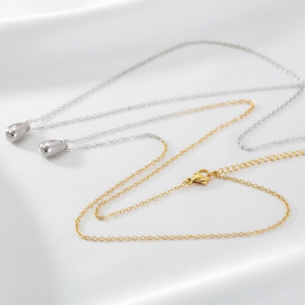 #サージカルステンレス #ステンレスネックレス #ドロップネックレス #しずくモチーフ #シルバーネックレス #ゴールドネックレス #金属アレルギー対応 #シンプルネックレス #AtelierBEcudes #ギフトにおすすめ