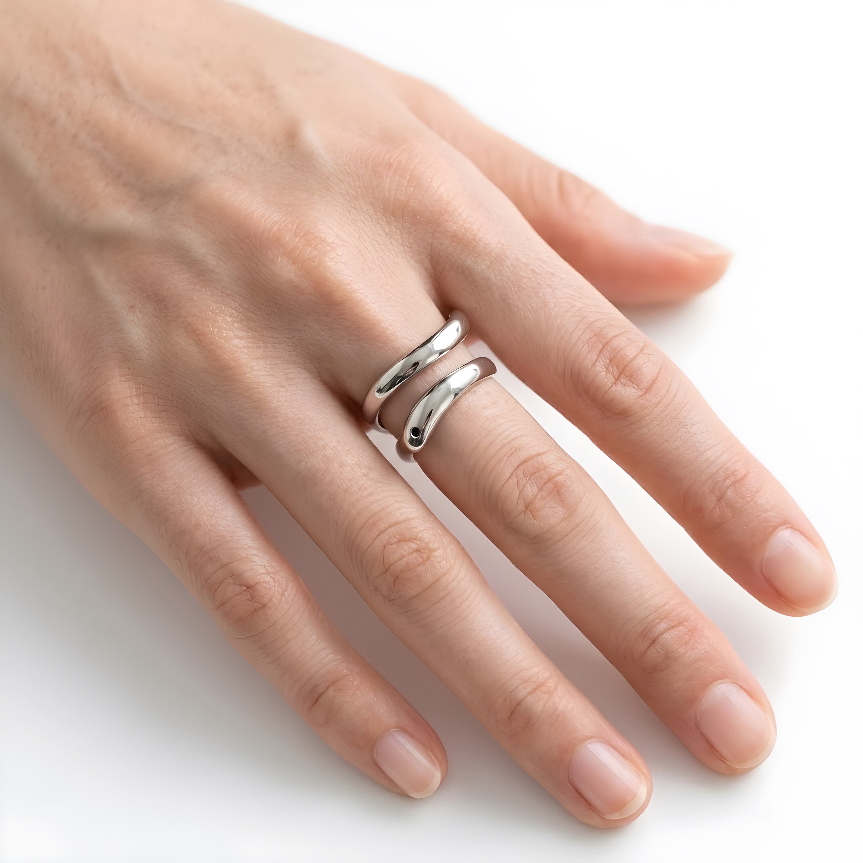 流れるような曲線が特徴のエレガントでモダンなデザインリングをご紹介します。シンプルでありながら、指先に存在感を与えるデザインは、どんなスタイルにもマッチし、コーディネートのアクセントとして活躍します。ユニークなフォルムが見る人の目を引くこのリングは、自分へのご褒美や大切な方への贈り物としても最適です。シンプルさの中に込められた洗練された美しさを、ぜひ手元でお楽しみください。
