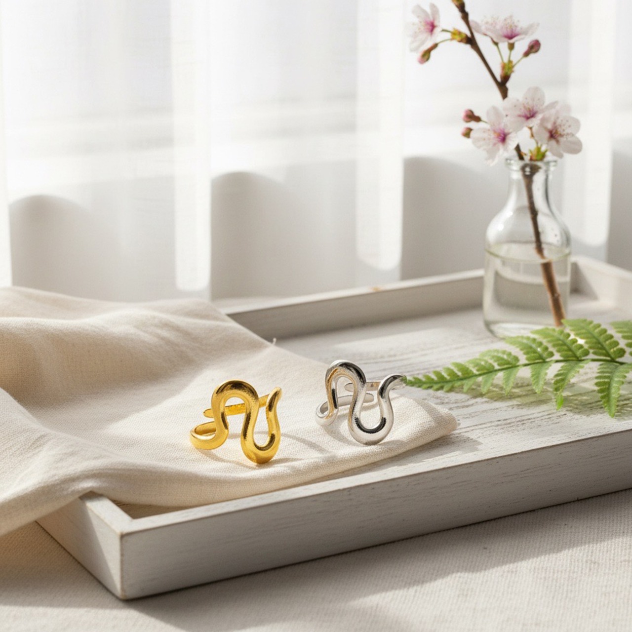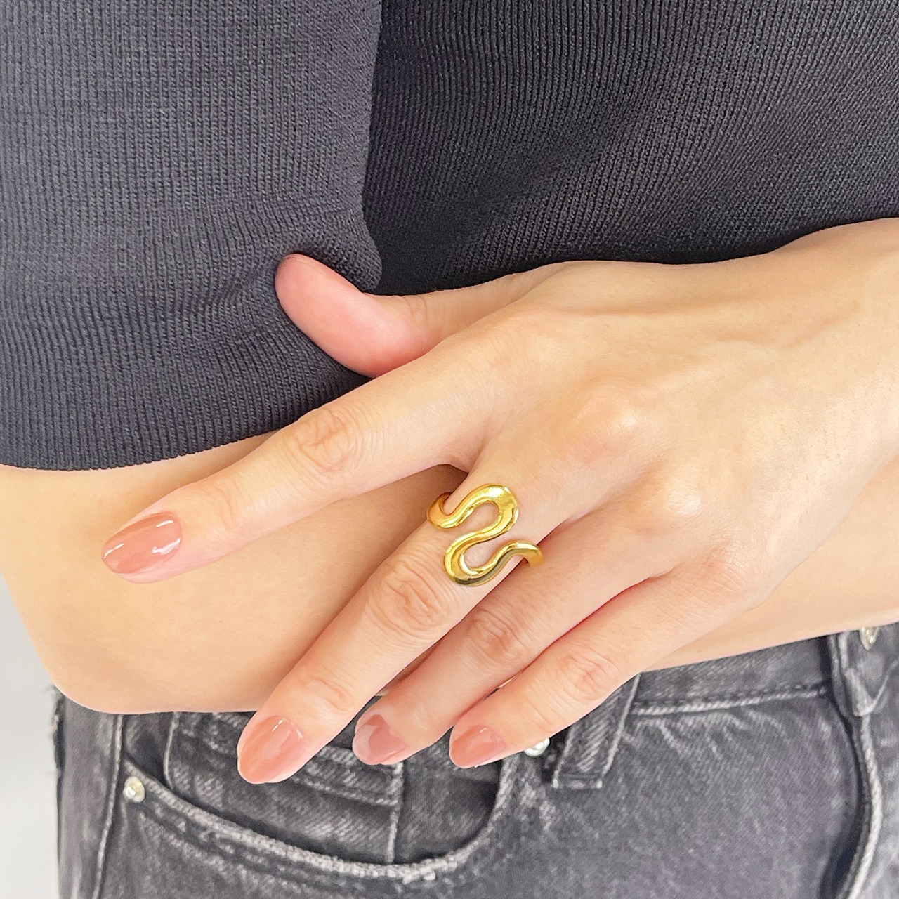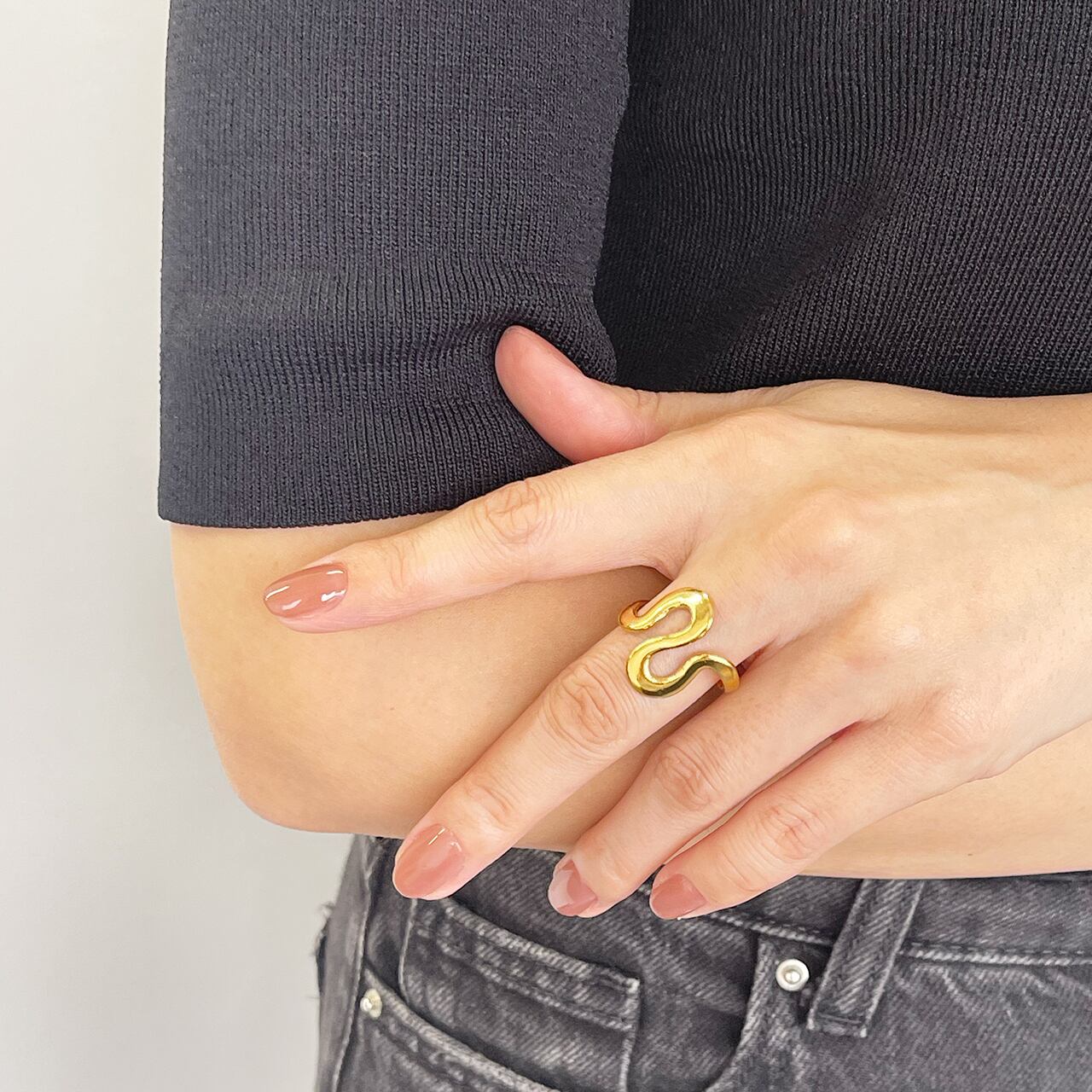 やわらかくうねるウェーブラインが印象的な、ミニマルデザインのオープンリング。滑らかな曲線が指元に自然に沿い、シンプルでありながらも個性を感じさせる佇まいに仕上げました。