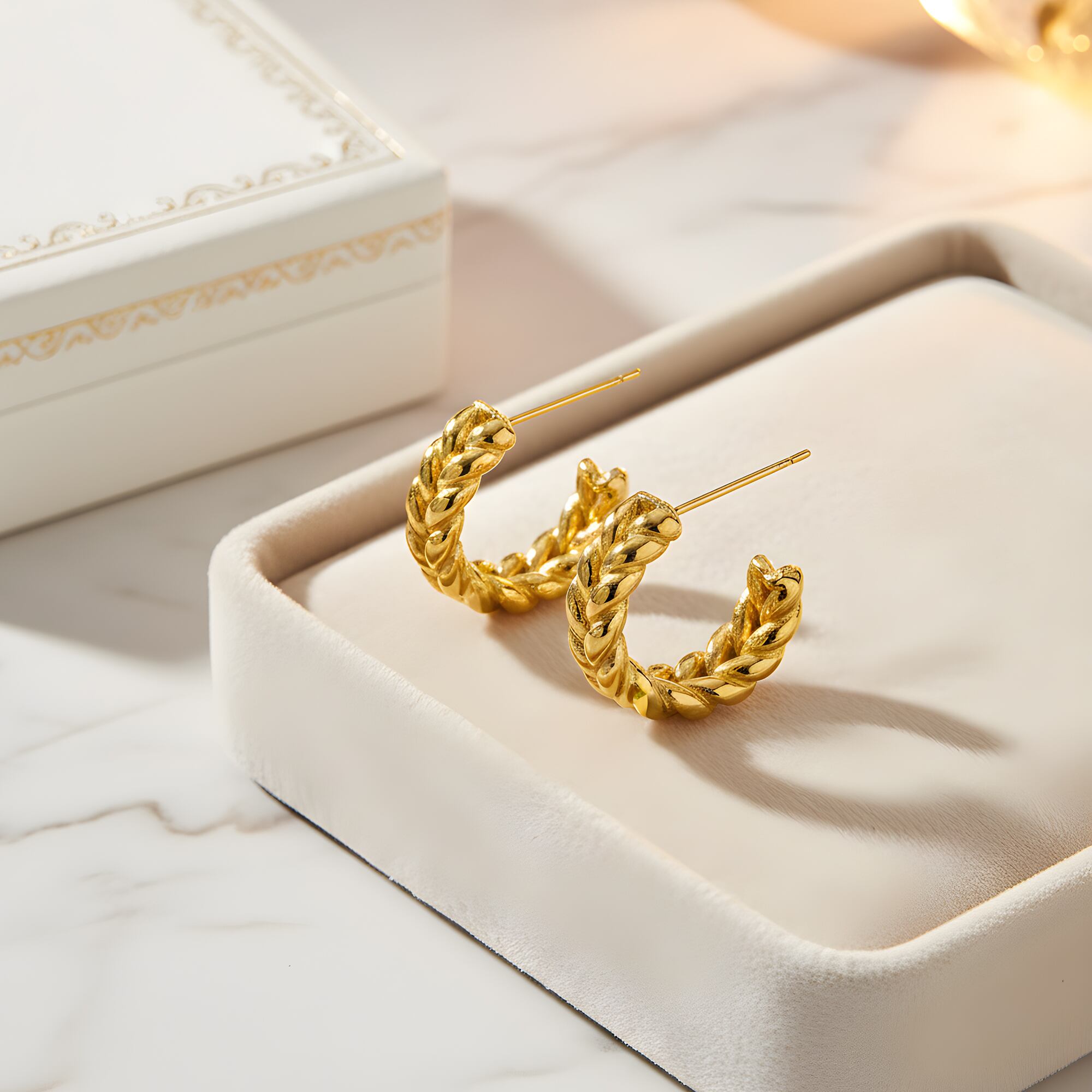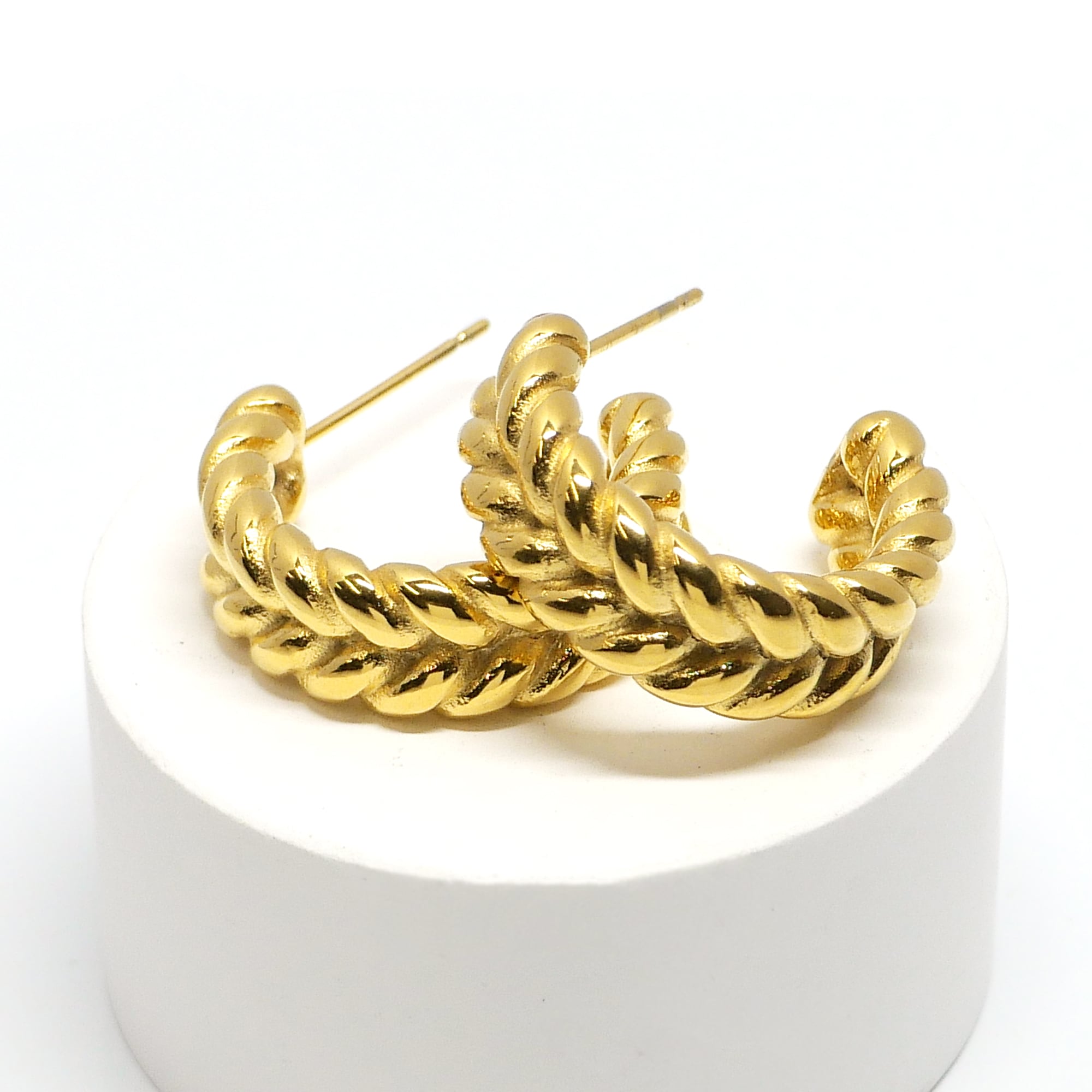 立体的なねじり模様が印象的な、存在感あるフープピアス。
