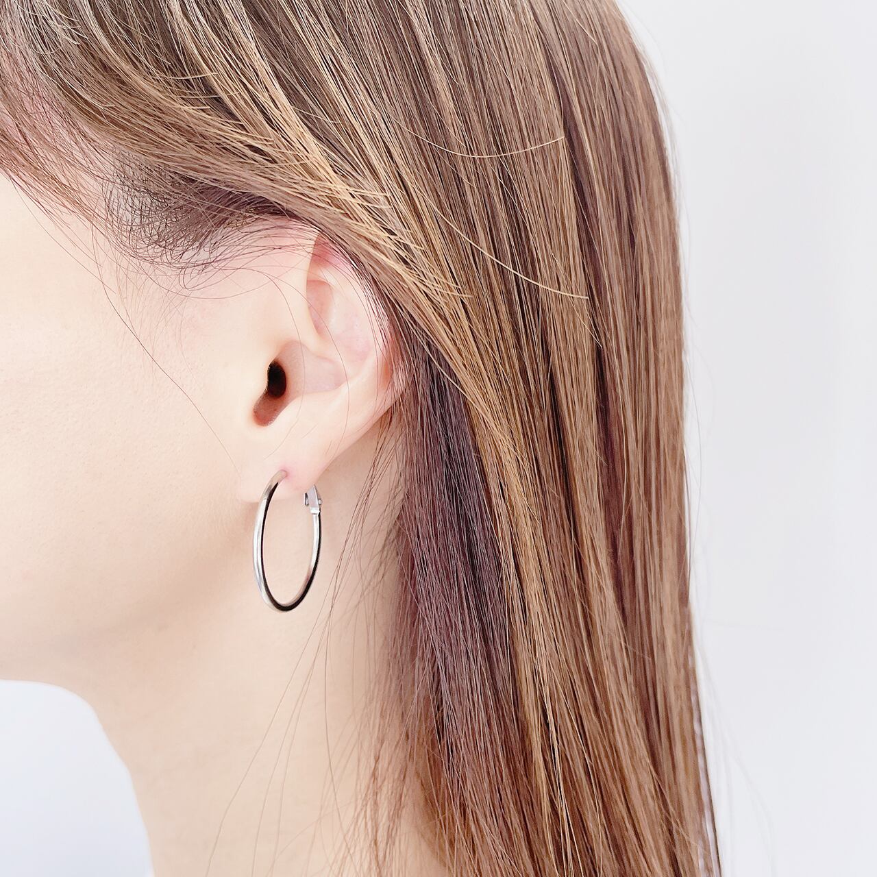 シンプル、モダンなディリーのフープピアスです。ピアスキャッチ要らず、耳から落ちる心配もない。どんなコーディネートにも合わせやすい万能なアクセサリーとして服装やシーンを選ばずにご愛用いただけます。