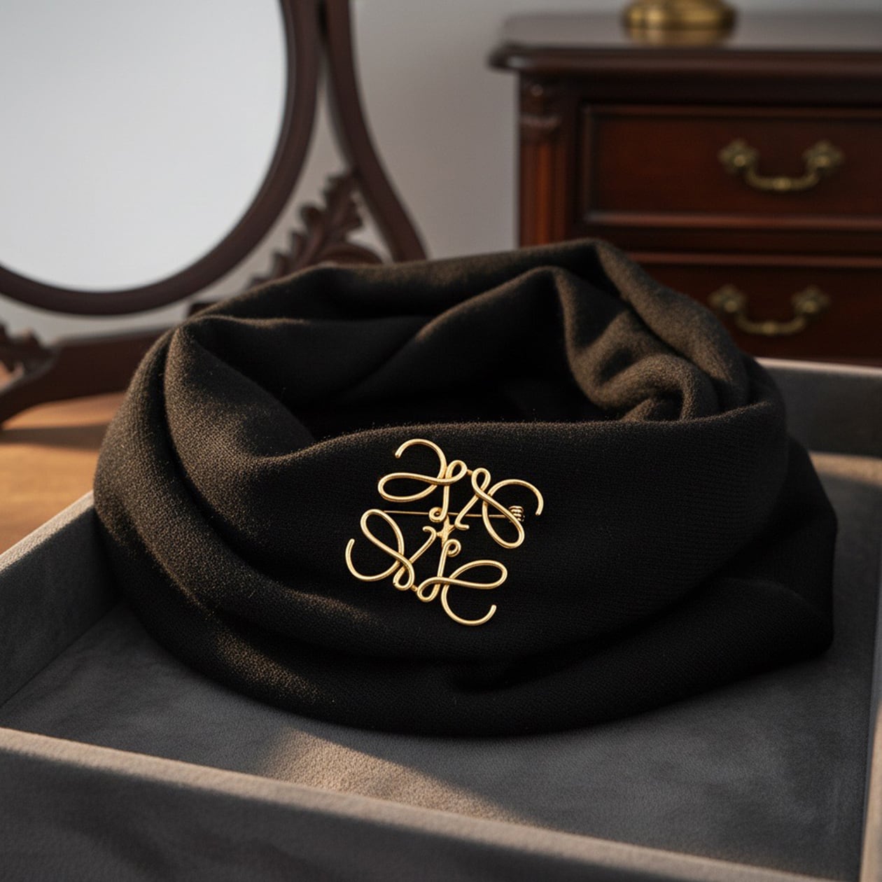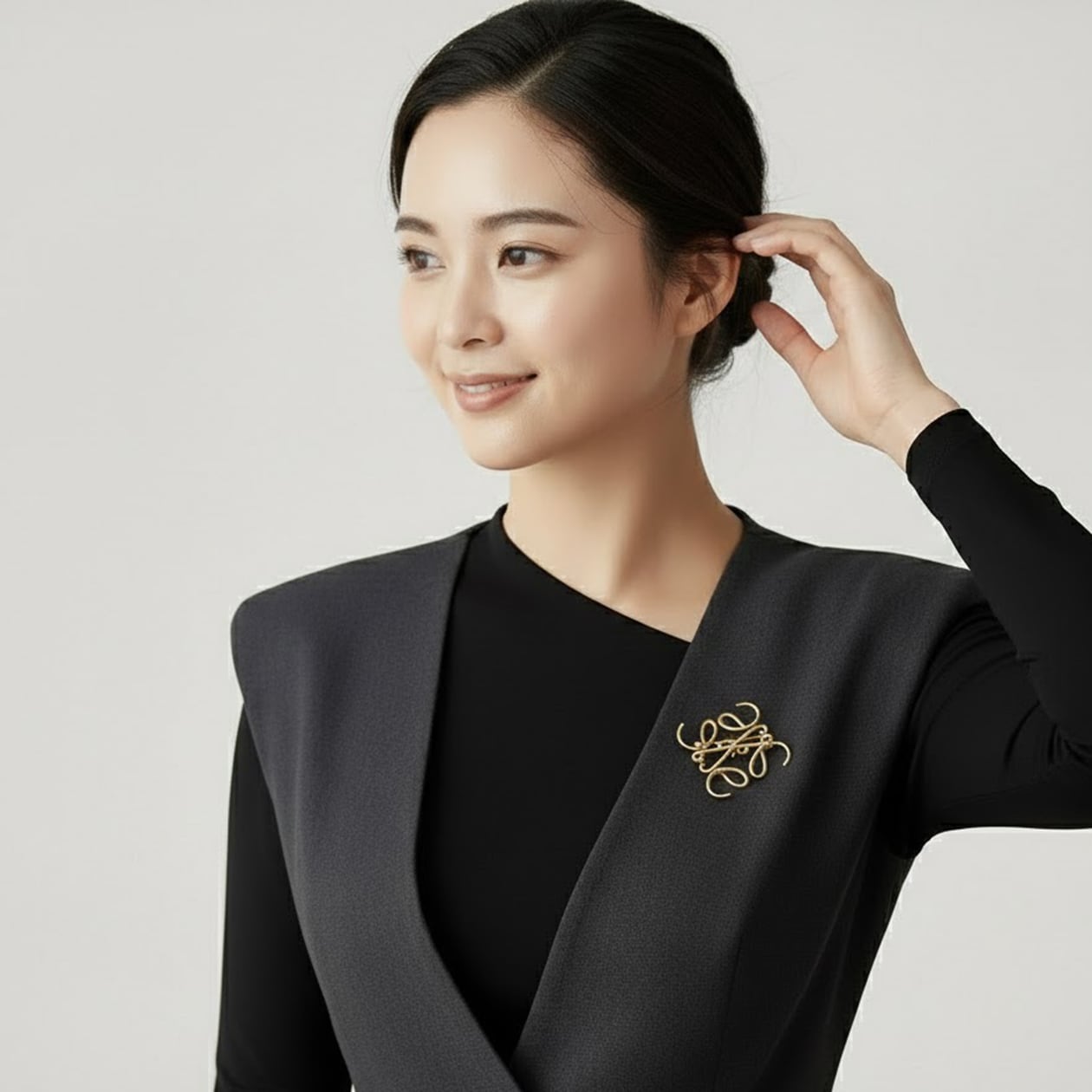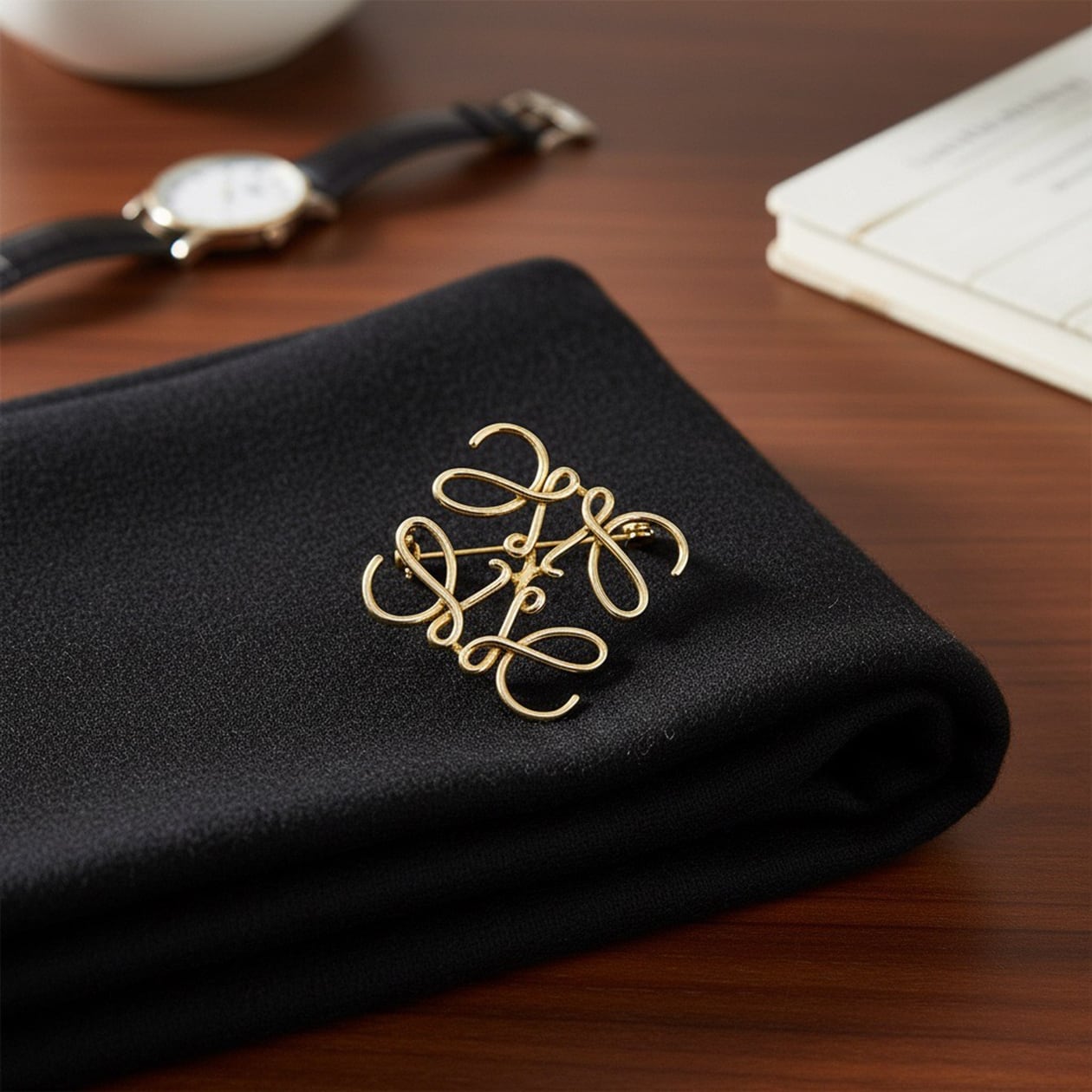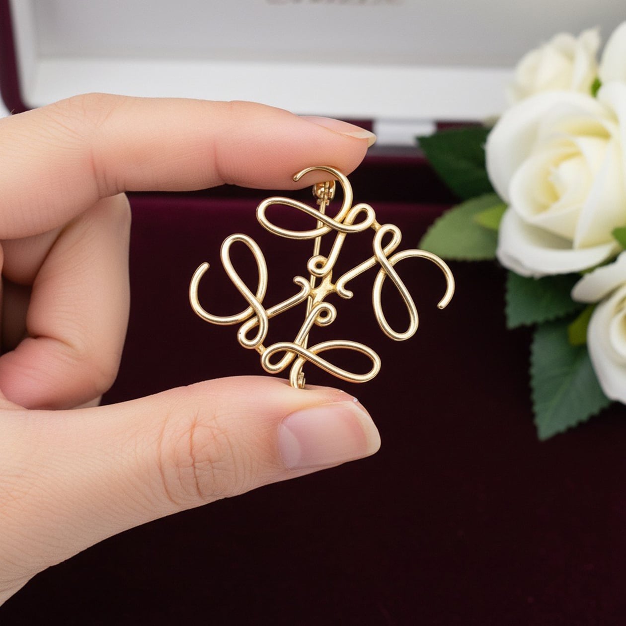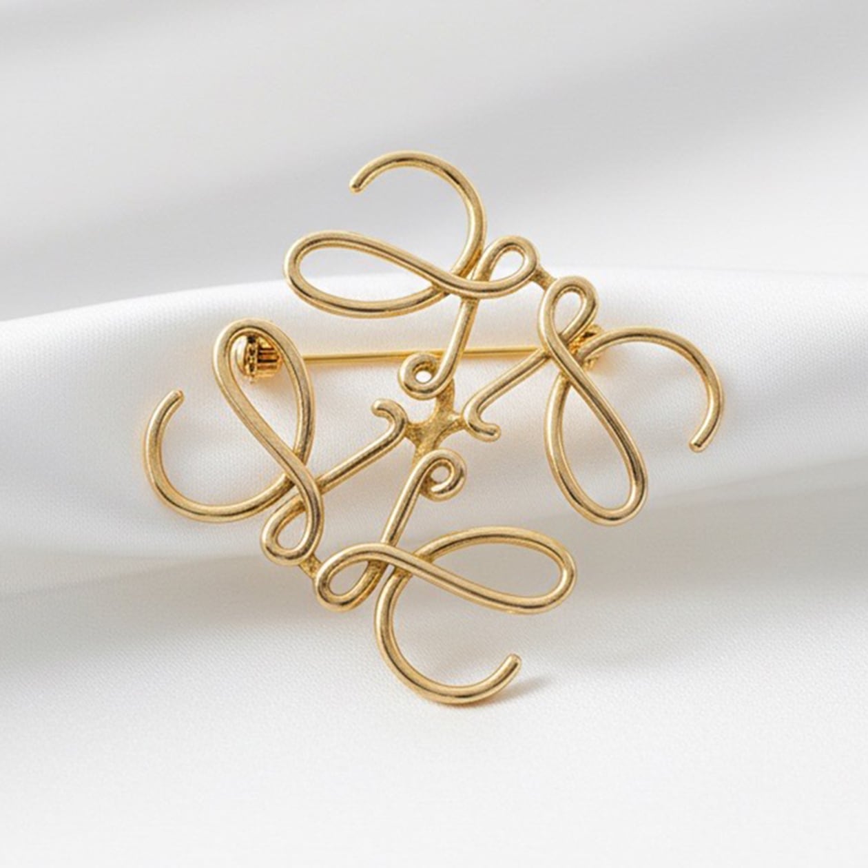 優雅な曲線が美しい「クラシカルスクリプトブローチ」。手書き文字を彷彿とさせる流れるようなデザインが、アンティーク調のゴールド仕上げで洗練された印象を与えます。フォーマルからカジュアルまで幅広いシーンでお使いいただけるこのブローチは、ジャケットやストール、バッグにアクセントを加えるのに最適。どんなコーディネートにもエレガントな雰囲気を添える万能なアイテムです。