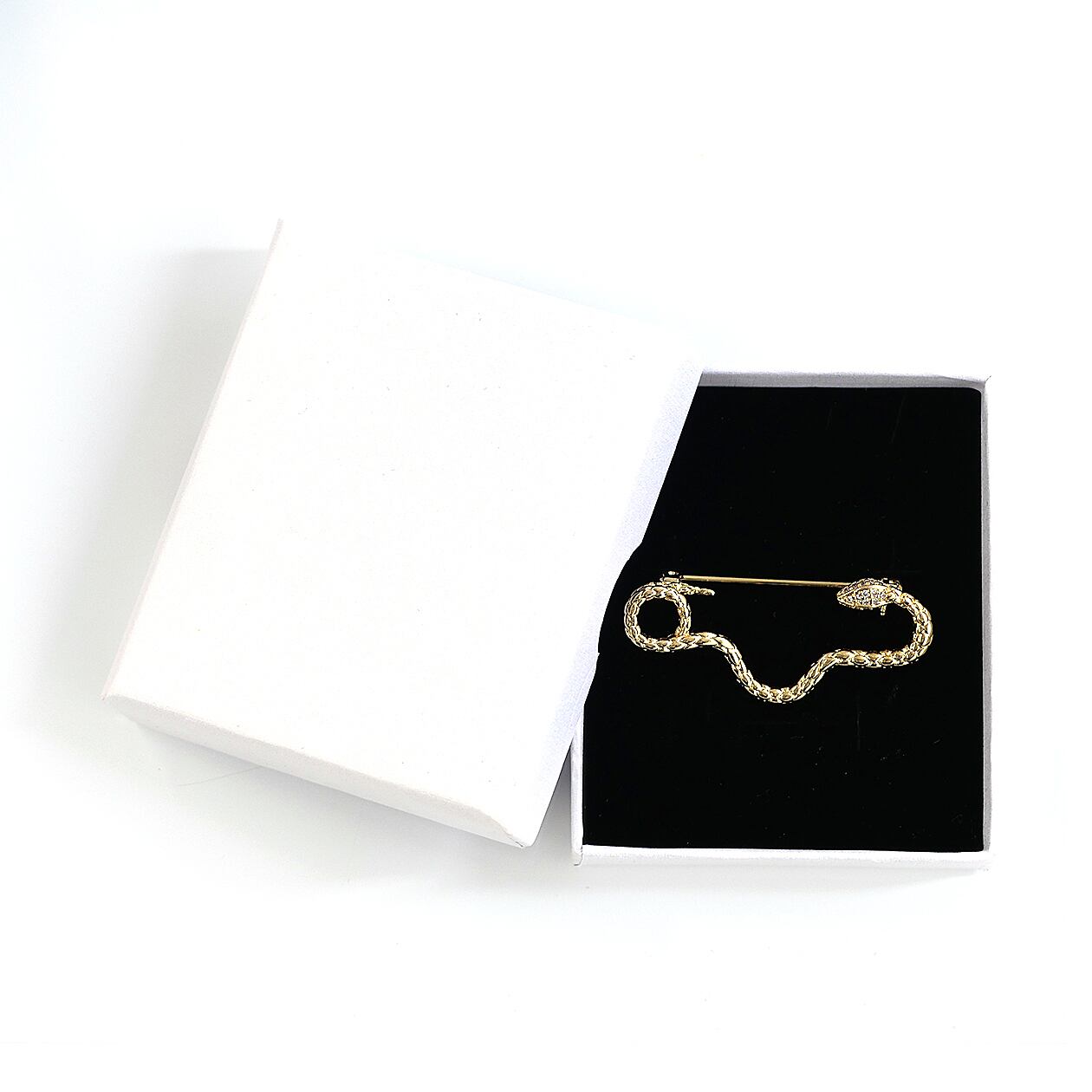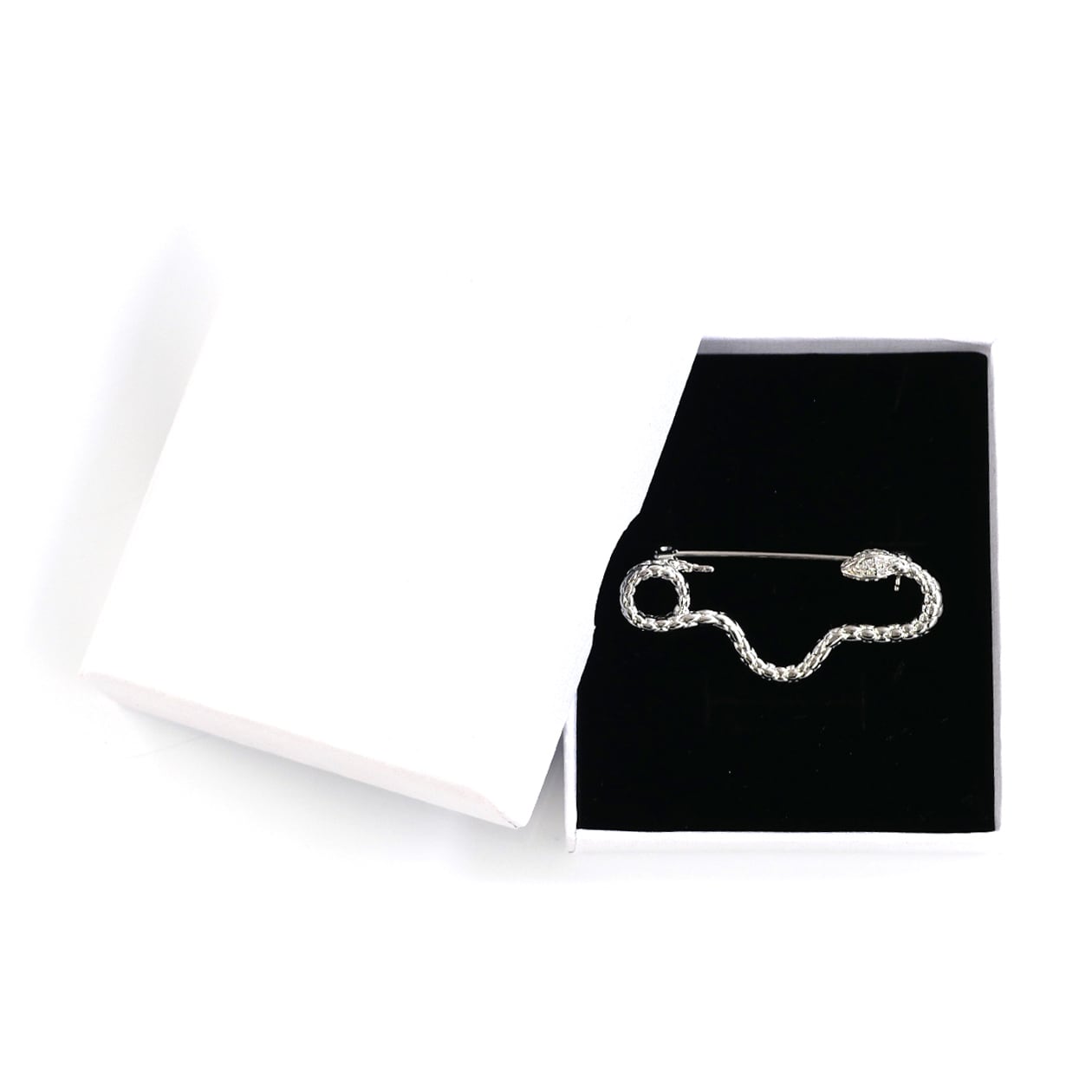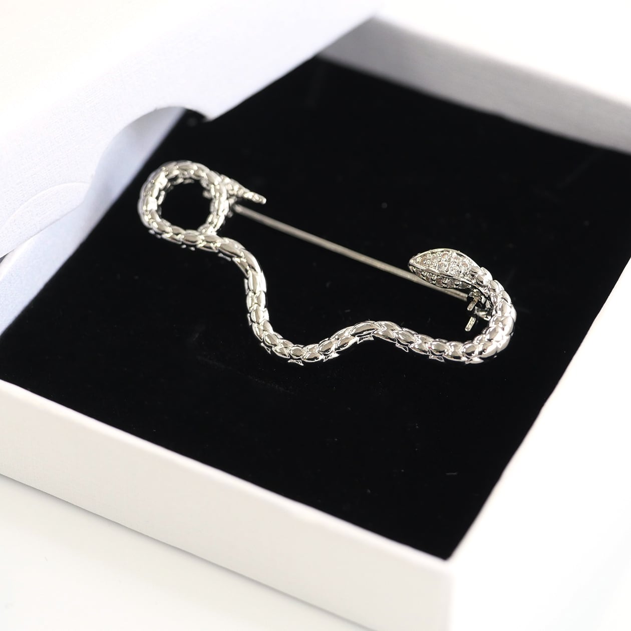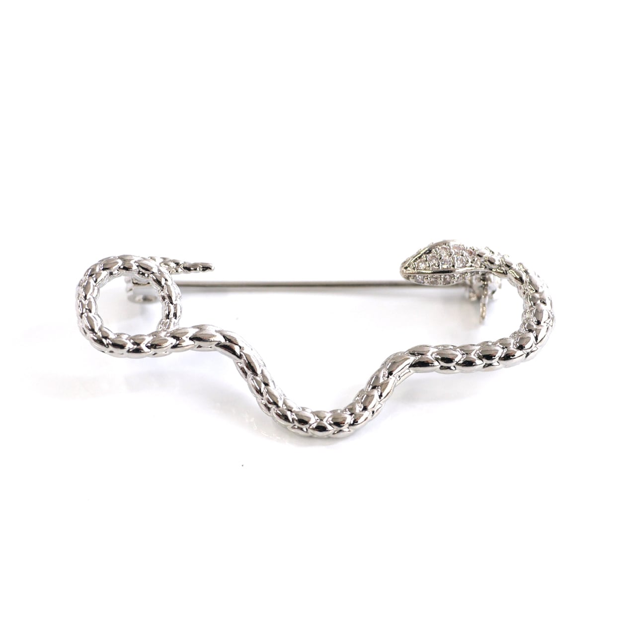 頭部に施されたキュービックジルコニアの輝きが、神秘的で洗練された印象を与えます。細かなディテールで表現された鱗模様がリアリティと高級感を演出し、存在感のある一品です。