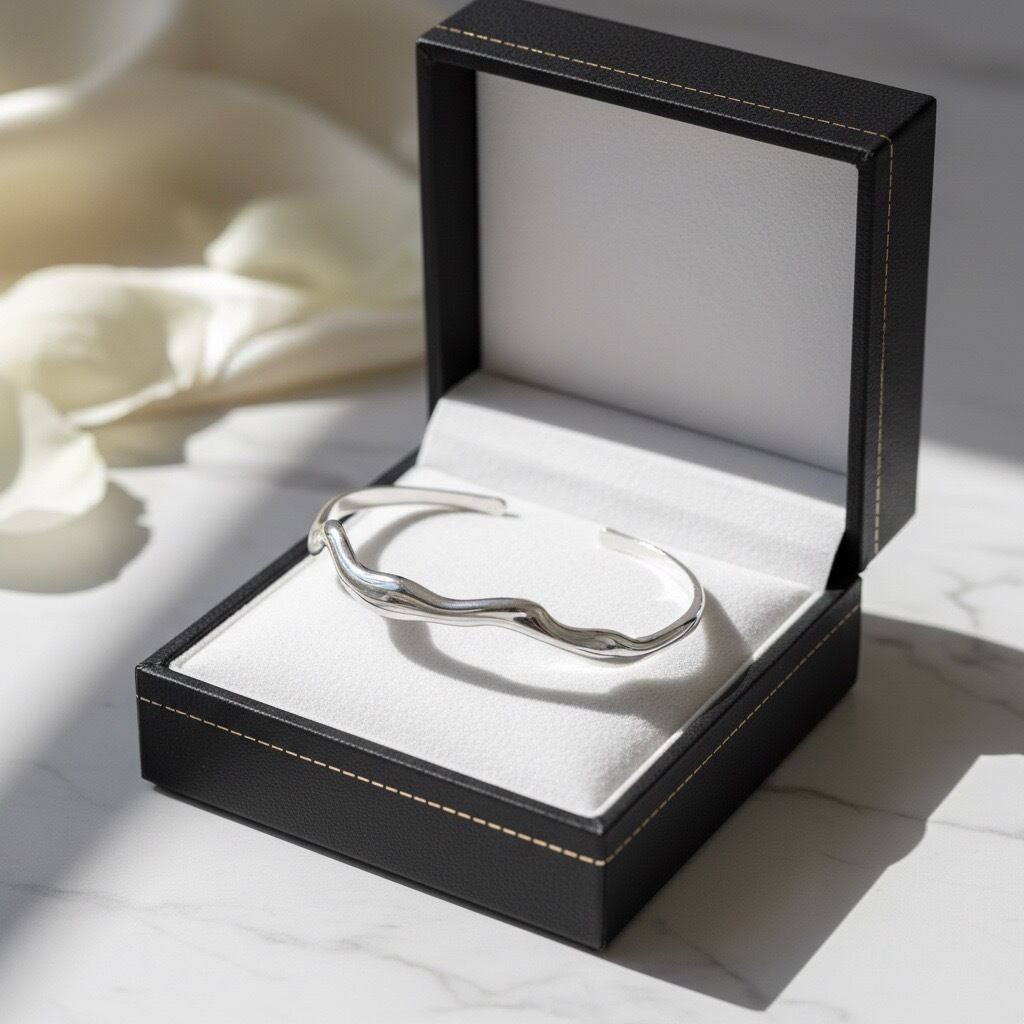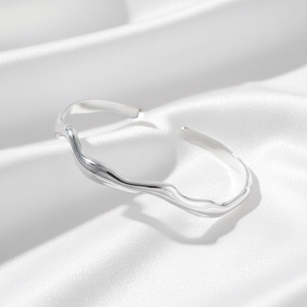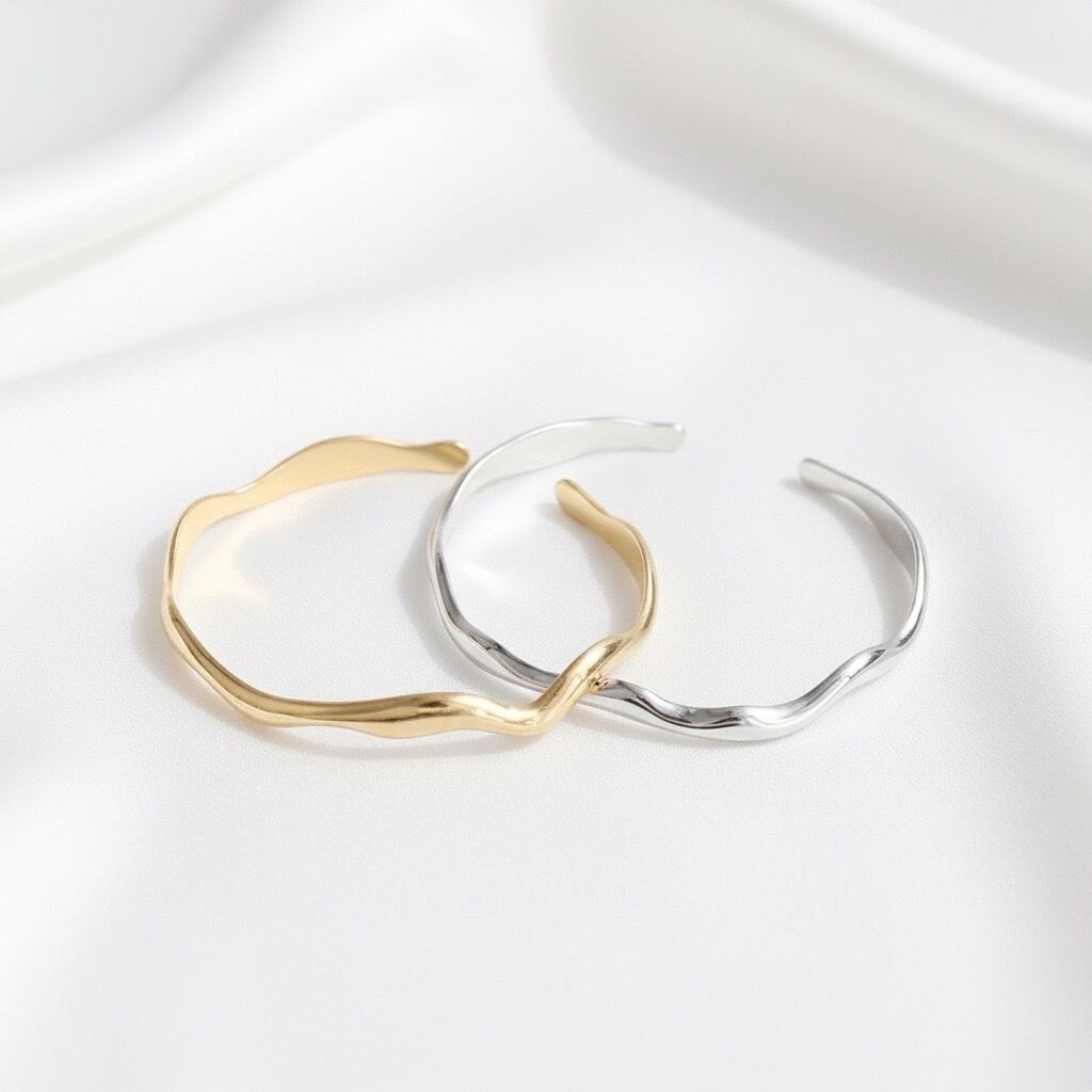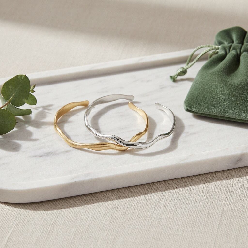 流れるような有機的なフォルムが特徴のバングル。シンプルながらもひとさじの個性を加えたデザインで、手元に程よいアクセントをプラスします。しなやかな曲線が腕に寄り添い、軽やかで快適な着け心地。単体での着用はもちろん、ほかのブレスレットや時計とのレイヤードスタイルにも馴染みやすく、日常から特別なシーンまで幅広く活躍します。